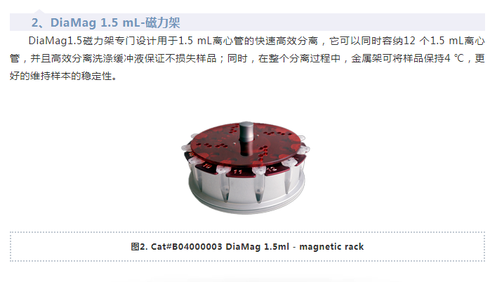 在分子實(shí)驗過(guò)程中,磁珠法核酸純化、磁珠法免疫沉淀實(shí)驗如:IP,Co-IP,ChIP等,都需要一個(gè)高效金屬磁力架,它不僅可以實(shí)現核酸和蛋白質(zhì)的高效磁珠分離,還可以簡(jiǎn)化實(shí)驗操作提高實(shí)驗效率。隨著(zhù)磁珠在核酸或蛋白分離方面的應用普及,磁力架成為了實(shí)驗室的必備小工具。
