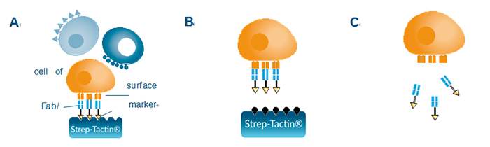 Streptamer?涵蓋了從細胞分選、細胞擴增到細胞染色的一系列完整細胞研究產(chǎn)品線(xiàn)。事實(shí)上,Streptamer?的這種可逆機制是依賴(lài)于IBA專(zhuān)利的Strep-tag?技術(shù),從而經(jīng)過(guò)多重陽(yáng)性分選,可獲得用于后期擴增或染色的目的細胞。