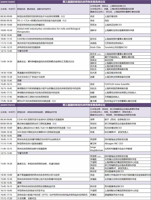 2020 BPIT生物藥創(chuàng )新技術(shù)大會(huì )總日程