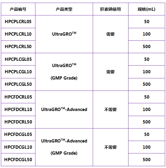 符:Helios可提供的血清替代物的所有產(chǎn)品和規格: