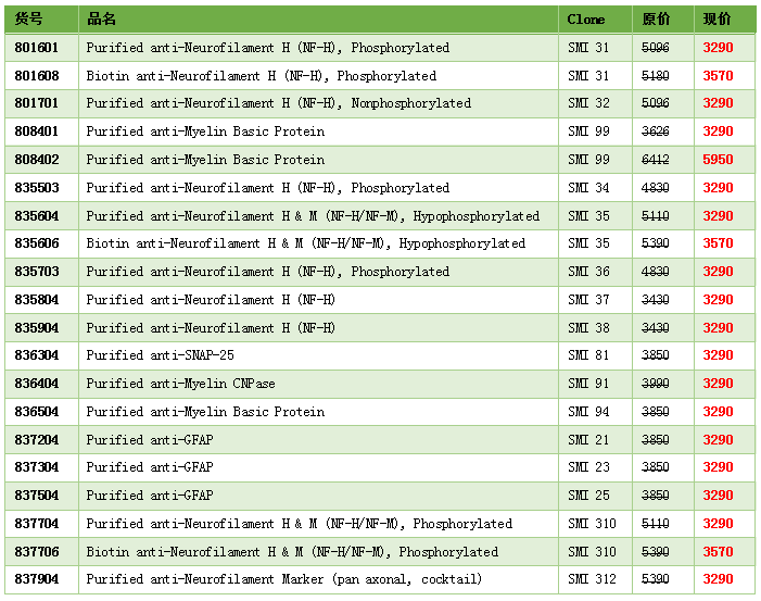 SMI?克隆號系列抗體是BioLegend 旗下品牌 Covance非常重要而知名的產(chǎn)品線(xiàn),被業(yè)內譽(yù)為研究神經(jīng)細胞特異marker的金標準。