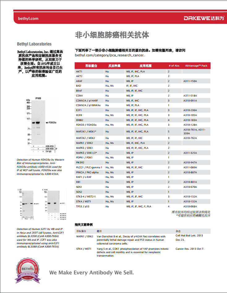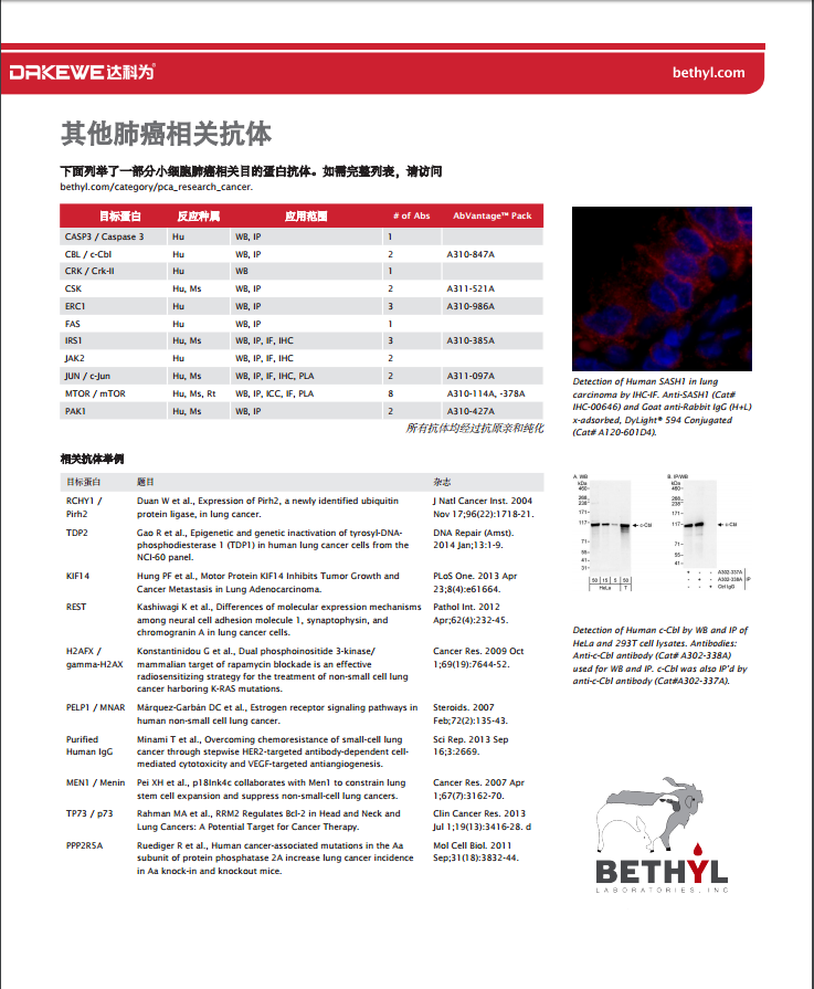 Bethyl --肺癌相關(guān)研究抗體_細胞培養/分選_技術(shù)專(zhuān)欄_技術(shù)天地_深圳市達科為生物技術(shù)股份有限公司