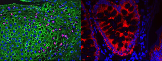 2.AMCA:常用在多標記實(shí)驗中,如免疫熒光、流式細胞術(shù)。其缺點(diǎn)是,淬滅快,且由于肉眼不能很好的檢測其所激發(fā)的藍色熒光,因而AMCA耦聯(lián)的二抗更適用于檢測大量存在的抗原。
