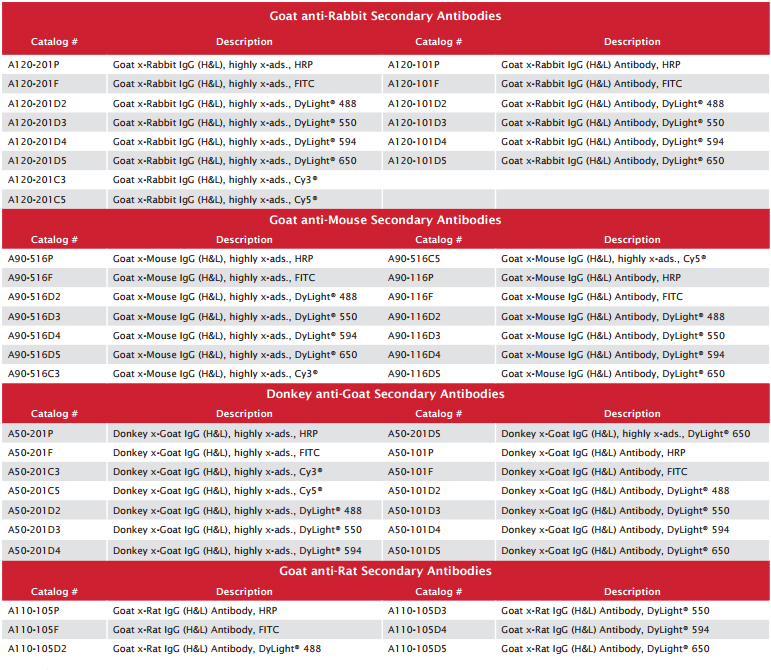 更多請瀏覽www.bethyl.com