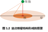 ELISPOT板膜,就會(huì )被板膜上的包被抗體捕獲。在所有從細胞到斑膜的路徑中,有條路徑短,這就是位于細胞正下方到板膜的垂直距離。路徑越短,擴散中耗散損失就越少,到達該點(diǎn)的細胞因子就越多,將來(lái)顯色的時(shí)候顏色就越深。以垂直距離點(diǎn)為圓心,向外畫(huà)一系列的同心圓,同心圓的直徑越大,細胞因子擴散的距離就越長(cháng),耗散越多,到達的細胞因子就越少,顏色就越淺。當超過(guò)一定距離之后,擴散到達的細胞因子就減少到背景水平了,這就是斑點(diǎn)的邊界。
