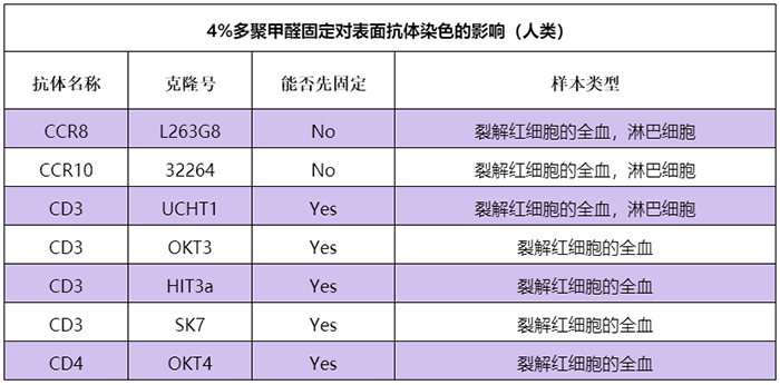 如果我們的流式實(shí)驗要求對樣本進(jìn)行預先固定的處理,那實(shí)際上這就需要提前去驗證染色方案里所選的克隆是否適用于先固定后染色,這也有一定工作量。推薦大家參考借鑒BioLegend關(guān)于固定的專(zhuān)題,里面有做了很多克隆能否適用于先固定后染色的驗證。