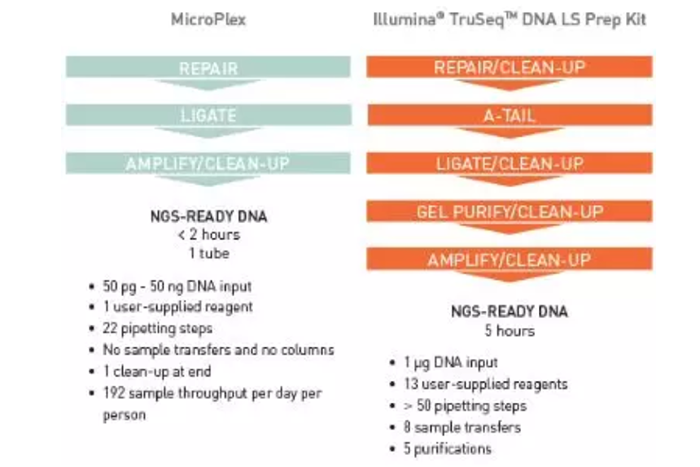 Fig.1 比較MicroPlex kit和Illumina? TruSeq? kit構建文庫的操作流程