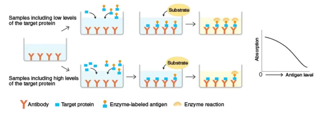 1、樣本中分析物水平較低可以使用哪些方法改進(jìn)檢測?通過(guò)增加洗滌次數和兩次洗滌之間的浸泡時(shí)間降低背景。控制測定精確度。例如,在移液時(shí)要更加小心和一致,使用干凈的紙巾拍板,以避免污染。增加孵育時(shí)間。但這通常也會(huì )增加背景,因此檢測靈敏度不一定會(huì )增加。如果可以的話(huà),建議濃縮樣本。使用5-PL曲線(xiàn)擬合方法,更準確地計算標準曲線(xiàn)下端的樣本濃度。在大多數情況下,樣本可能只含有非常低或無(wú)法檢測到的分析物水平。這時(shí)無(wú)論如何操作和測定,仍然無(wú)法檢測到準確濃度。2、包板應如何存放?如果包被完抗體的板不能立即使用,應將其密封并在4°C儲存過(guò)夜。3、為什么使用同一克隆號的捕獲抗體和檢測抗體建立ELISA實(shí)驗沒(méi)有成功?如果使用相同的克隆抗體進(jìn)行檢測和捕獲,則抗原表位可能已經(jīng)被其中一種抗體占據并抑制另一抗體結合。建議捕獲和檢測抗體選擇不同的克隆號。4、應該使用哪種包被緩沖液?一般來(lái)說(shuō),建議使用PBS(pH 7.4)或碳酸鹽緩沖液(pH 9.5)。確切的包被緩沖液可能取決于要檢測的細胞因子。5、為什么細胞因子流式染色與ELISA測定之間沒(méi)有良好的相關(guān)性?流式細胞術(shù)檢測的胞內細胞因子代表檢測時(shí)的陽(yáng)性細胞比例,ELISA代表細胞因子隨時(shí)間的積累量??赡苌倭康年?yáng)性細胞在一段時(shí)間之后會(huì )分泌大量的細胞因子于培養上清中,導致ELISA的結果與胞內因子染色的結果不一致6、可以使用細胞培養板進(jìn)行ELISA實(shí)驗嗎?不可以。細胞培養板設計用于達到細胞培養目的,通常不具有高蛋白結合能力。對于ELISA,建議使用具有高蛋白結合能力的板,例如 Nunc Maxisorp?酶標板。7、血清等樣本可以重復使用嗎?不建議重復使用樣本。為了獲得準確的結果,樣本應分裝儲存,僅供一次性使用。如果重復使用樣本,需要進(jìn)行額外的驗證實(shí)驗,以確保實(shí)驗準確性。8、在什么步驟中,可以暫停ELISA實(shí)驗?可以冷凍板子以備后用嗎?最好遵循說(shuō)明書(shū)操作,沒(méi)有任何可以暫停實(shí)驗的步驟。但是,如果一定需要暫停實(shí)驗,建議在封閉步驟(包被捕獲抗體后)??梢栽诳字屑尤?00 μL封閉緩沖液,并將板在4°C過(guò)夜(信號損失最小或沒(méi)有)或在-20°C冷凍幾天(可能會(huì )對信號產(chǎn)生一些影響)。不建議在第一步進(jìn)行(在4°C用捕獲抗體包被超過(guò)16-20小時(shí)),因為可能會(huì )導致高背景。9、包被捕獲抗體可以超過(guò)過(guò)夜的時(shí)間嗎?通常來(lái)說(shuō),建議在4°C包被16-20小時(shí)。較長(cháng)的孵育時(shí)間可能會(huì )增加與板結合的捕獲抗體量,會(huì )增加背景。10、培養基中的酚紅會(huì )干擾ELISA測定嗎?不會(huì ),培養基中酚紅的吸光度可以在計算時(shí),通過(guò)扣除空白孔中本底的吸光度而消去,因此不會(huì )干擾ELISA測定的讀數。11、對于一些ELISA試劑盒,為什么血清樣本需要稀釋?zhuān)?血清樣本稀釋可以盡量減少樣本和標準品之間的基質(zhì)差異,以獲得更加準確的結果。12、如何提高ELISA檢測獲得更好的信號和靈敏度?增加孵育時(shí)間,但這也可能會(huì )增加檢測的背景,同時(shí)不改變靈敏度。在孵育步驟中搖動(dòng)板子。確保標準品在使用前完全溶解。在兩次洗滌之間增加浸泡時(shí)間,以進(jìn)一步降低背景。如果可以的話(huà),在450-570 nm處讀板以減去本底。通過(guò)控制移液誤差或使用更大體積的洗滌緩沖液洗滌來(lái)改善CV值。使用5-PL或4-PL曲線(xiàn)擬合方法,而不是線(xiàn)性曲線(xiàn)擬合。
