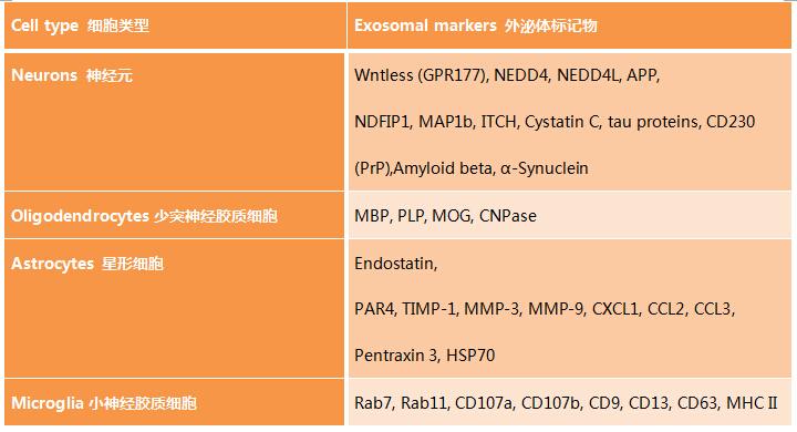 BioLegend公司可提供針對多種靶蛋白的抗體,可以鑒定來(lái)自中樞神經(jīng)系統中各種細胞類(lèi)型的外泌體。